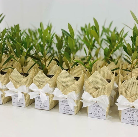 Olive Plant w/ Brown Cross & Ribbon Bomboniere