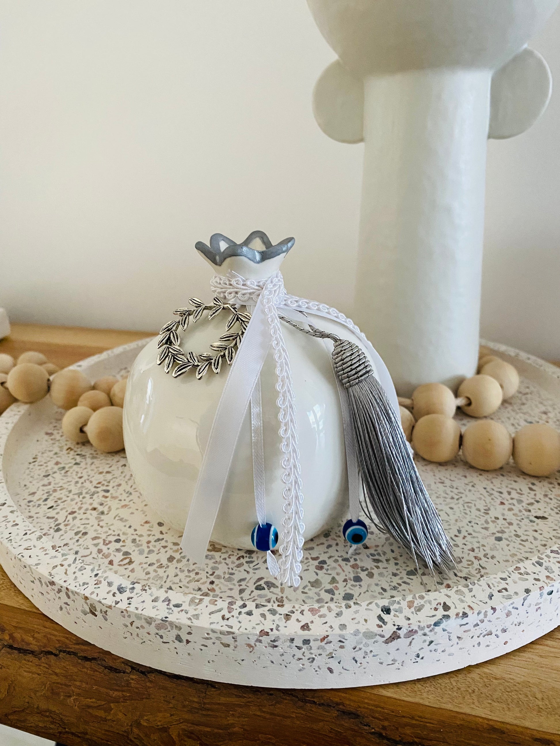 The Pomegranate is a symbol of good luck for the home, these make the perfect gift for housewarming or special occasions. This bud vase is waterproof, perfect to add a flower or display as is on its own.