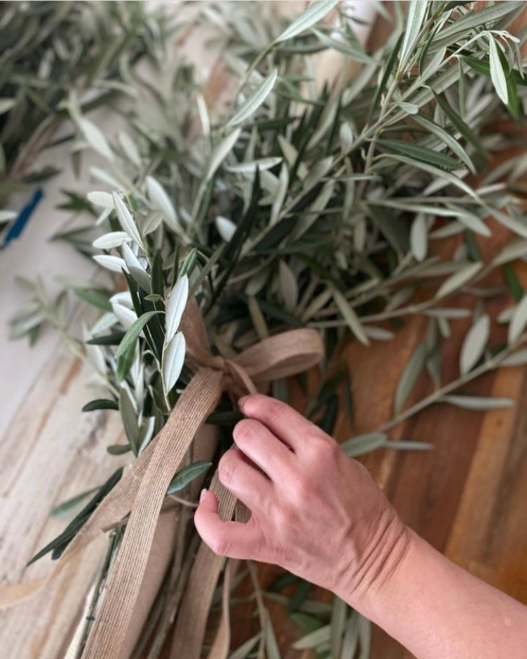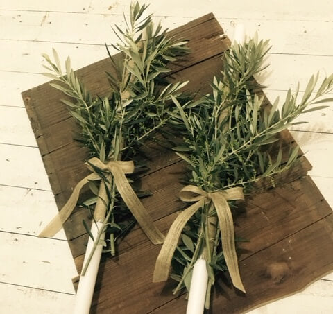 - Handmade Wedding Candles - Elegantly dressed with fresh olive branches and Natural Woven Ribbon