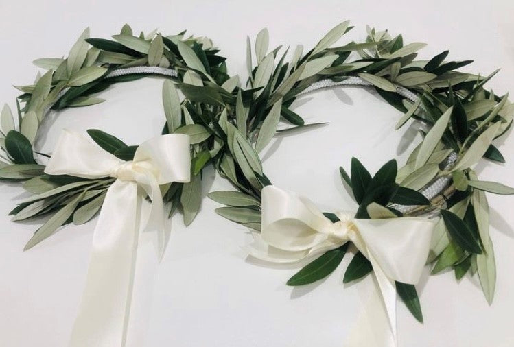 - Handmade Olive Wedding Crowns – dressed with fresh olive branches set on a round crown which can also be kept as a keep safe after the ceremony
